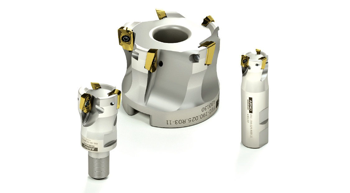 Корпуса для сменных пластин для обработки уступов и высокой подачей (HFC) диаметром от 16 до 80 мм; фрезерная система FE от ARNO.